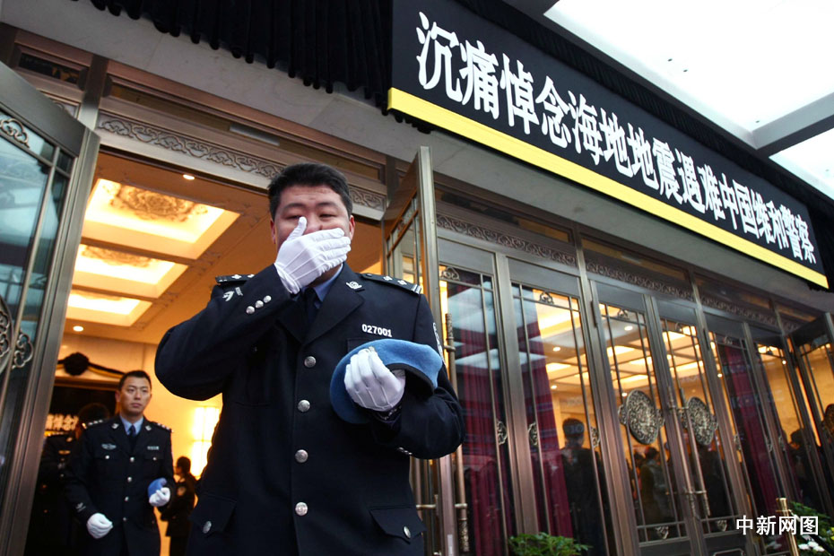 海地地震遇難中國維和警察遺體告別儀式1月20日上午9時(shí)在北京八寶山殯儀館大禮堂舉行。圖片來源:中國新聞網(wǎng)