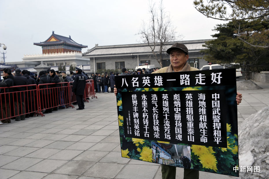 海地地震遇難中國(guó)維和警察遺體告別儀式1月20日上午9時(shí)在北京八寶山殯儀館大禮堂舉行。圖片來(lái)源:中國(guó)新聞網(wǎng)