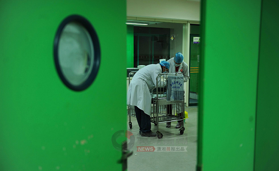 1月18日下午6點32分,在小振和去世后1小時內,眼庫工作人員到湖南省兒童醫院病房,在對著小小的遺體三鞠躬后,取出了眼角膜。瀟湘晨報 記者 楊抒懷 攝