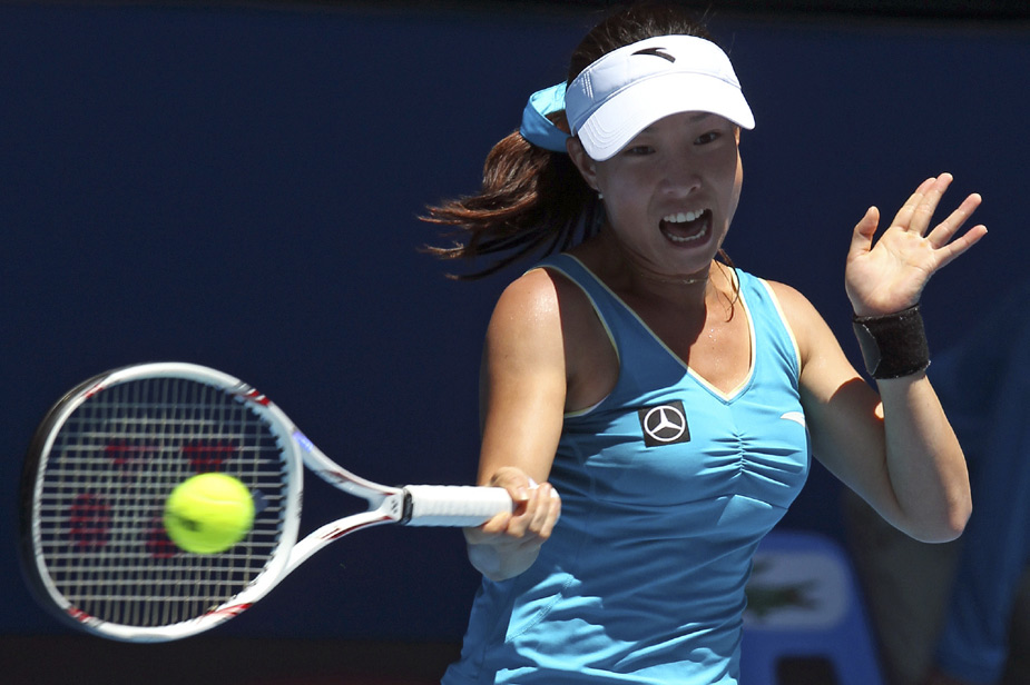 在26日上午進行的澳大利亞網球公開賽中,鄭潔直落兩盤橫掃俄羅斯好手基里連科躋身四強,刷新了個人澳網最佳紀錄。 圖片來源:中國新聞網