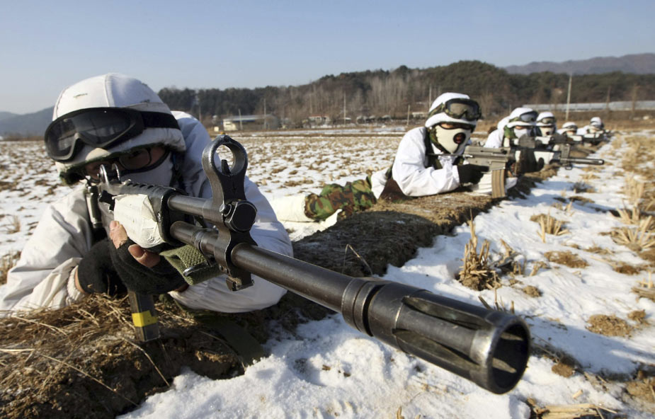1月27日,韓國(guó)江原道,韓國(guó)陸軍部隊(duì)在嚴(yán)寒中進(jìn)行戰(zhàn)術(shù)訓(xùn)練。