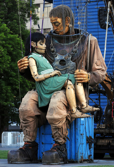 近日,智利首都圣地亞哥街頭,法國一劇團攜巨型提線木偶“小巨人”上街表演,它惟妙惟肖的表情和逼真的神態引得周圍觀眾的陣陣掌聲。圖片來源:中國新聞網