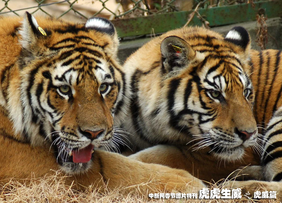 圖為兩只東北虎在廈門海滄野生動物園草叢中漫步。中新社發(fā) 黃少毅 攝
