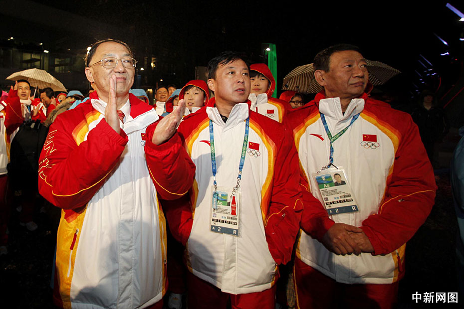 圖為中國代表團團長劉鵬(左)等參加升旗儀式。