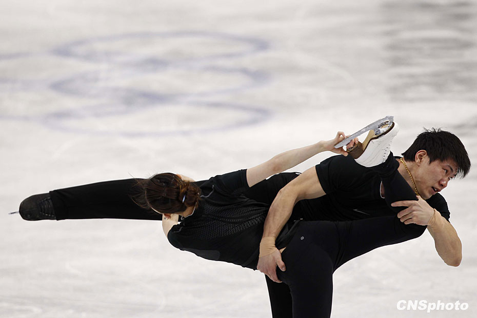 當?shù)貢r間2月13日,中國花樣滑冰隊龐清/佟健、張丹/張昊在溫哥華太平洋體育館,利用最后的休息時間重復練習積極備戰(zhàn)即將到來的比賽。中新社記者 盛佳鵬 攝