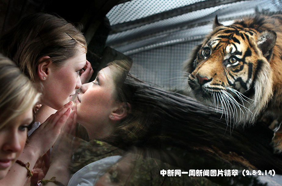 周一(8日)學(xué)生們參觀愛丁堡動物園時,隔著玻璃與一只蘇門達臘虎面對面。