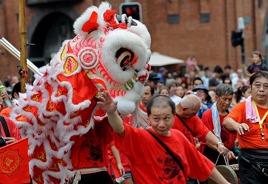 圖為澳大利亞悉尼唐人街上華人社團舞獅慶新春。