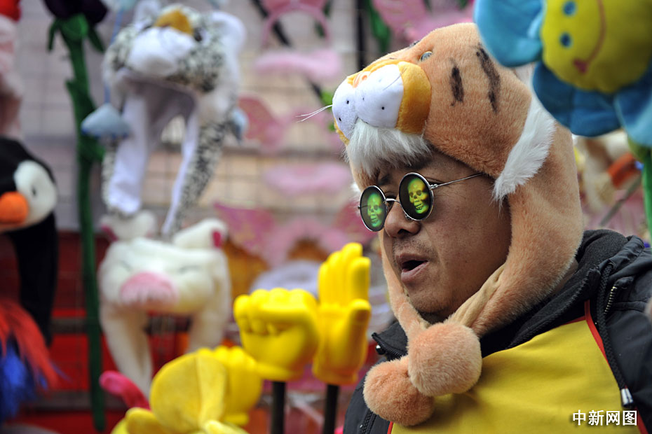 2月14日,農(nóng)歷正月初一,北京各大傳統(tǒng)廟會(huì)、洋廟會(huì)爭(zhēng)相開(kāi)幕,許多游客頭戴虎年飾品開(kāi)心游廟會(huì)。中新網(wǎng)記者 金碩 攝
