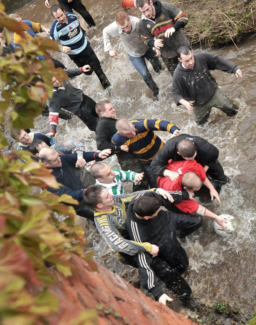 2月16日,英國阿什本的小鎮舉辦懺悔節,每年舉辦懺悔節足球賽是一項古老的傳統,有數百年的歷史,最早的文字記錄是1683年。圖片來源:中國新聞網
