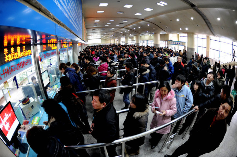 2月18日,農歷正月初五,沈陽火車站迎來春節后首個客流高峰,排隊購票的長排達到售票處外2公里。以學生、農民工和探親流為主的客流高峰涌進車站。針對節后春運潮的提前到來,沈陽鐵路相關部門啟動預案,疏導旅客進站上車,確保旅客平安出行。紅一 攝