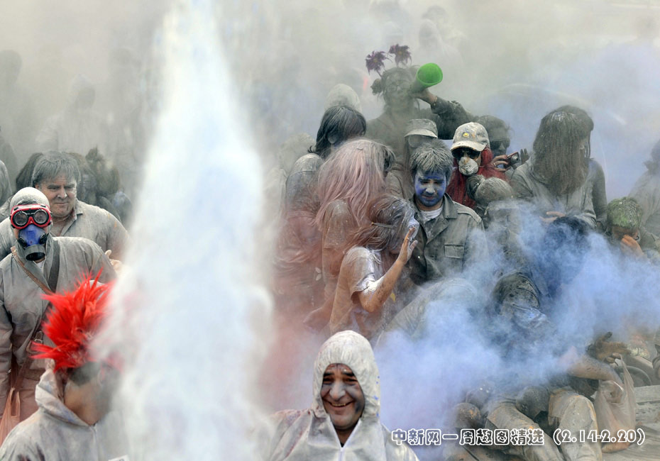 2月15日,希臘港口加拉西迪,狂歡者在街頭參加“面粉大戰”。“面粉大戰”是當地慶祝狂歡季結束的一項傳統活動,隨后將是為期40天的齋戒月直至復活節。圖片來源:中國新聞網>>點擊觀看詳細內容
