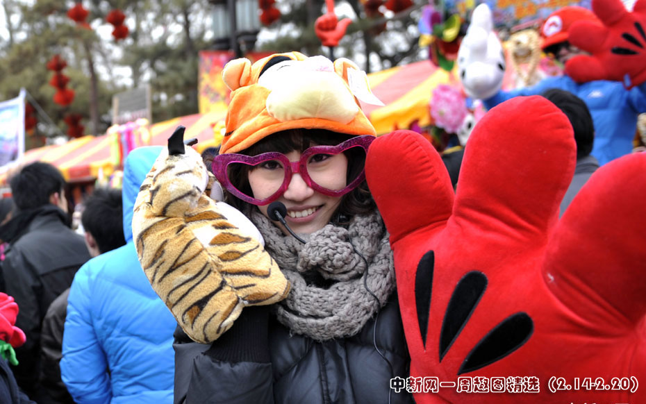 2月14日,農歷正月初一,北京各大傳統廟會、洋廟會爭相開幕,許多游客頭戴虎年飾品開心游廟會。圖片來源:中國新聞網>>點擊觀看詳細內容