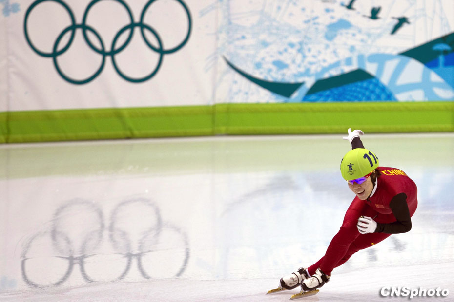 2月21日中午,剛剛結束的冬奧會短道速滑女子1500米決賽中,中國選手周洋力壓各路名將,以破奧運會紀錄的2分16秒993的成績奪冠,為中國代表團添得第三金。中新社發 盛佳鵬 攝
