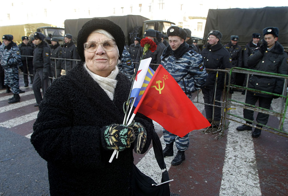 2月23日,俄羅斯莫斯科,示威者參加俄羅斯共產(chǎn)黨組織的集會,抗議軍隊改革。圖片來源:中國新聞網(wǎng)