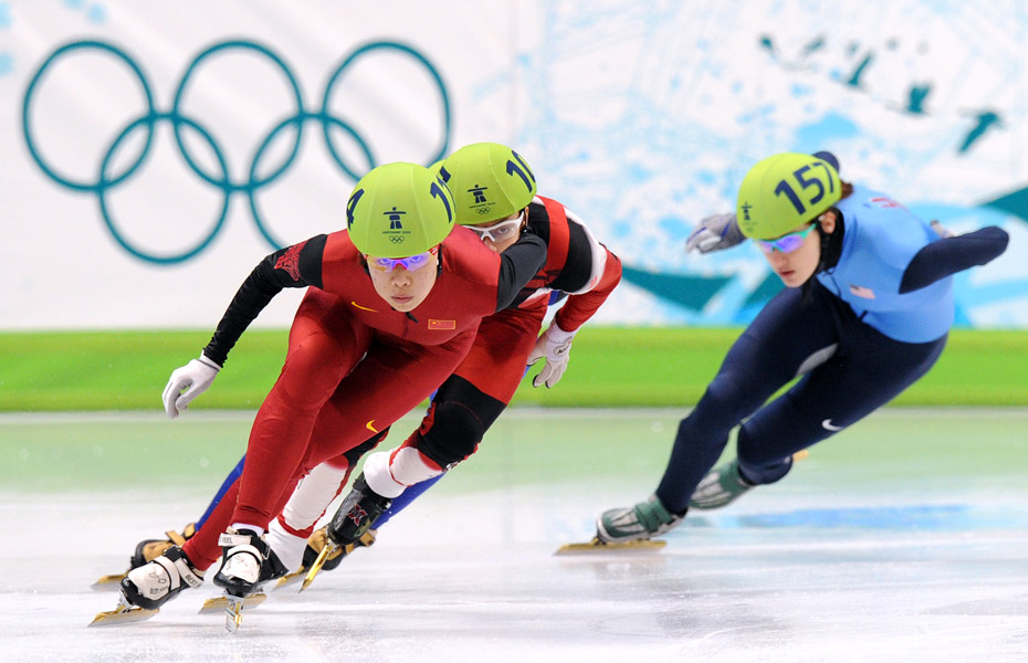 當(dāng)?shù)貢r間2月24日,溫哥華冬奧會女子短道速滑3000米接力A組決賽中,中國隊王濛、周洋、孫琳琳、張會四朵金花聯(lián)袂出擊,最終將金牌歸入中國隊囊中。圖片來源:中國新聞網(wǎng)