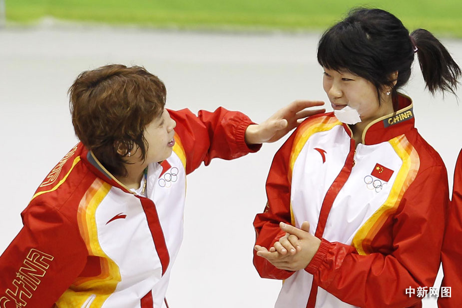 中國短道速滑隊25日在溫哥華冬奧會上奪得女子接力金牌,實現(xiàn)了歷史性突破。中新社記者盛佳鵬 攝
