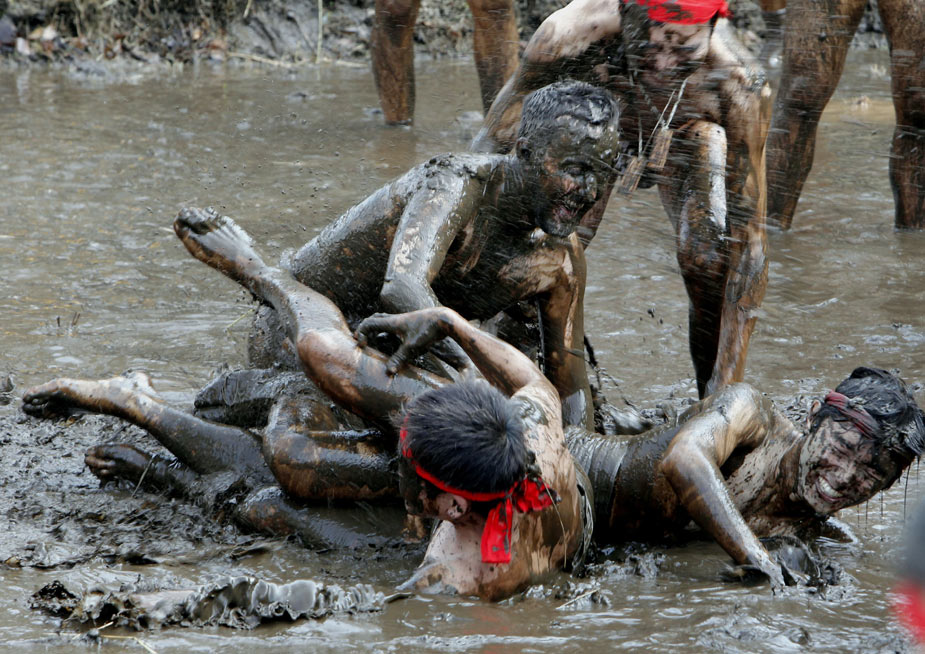 2月25日,在日本千葉縣四街道市郊外的稻田里,居民們參加一年一度的“泥漿節”。當地的男子們赤身跳進稻田,把泥漿涂抹在身上。人們希望通過這種儀式祈求新的一年能有個好收成。