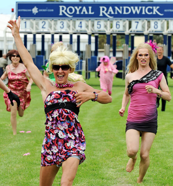 當地時間2月26日,澳大利亞悉尼,眾多同性戀們濃妝艷抹在皇家賽馬場舉行賽跑,迎接即將到來的悉尼同性戀大游行。