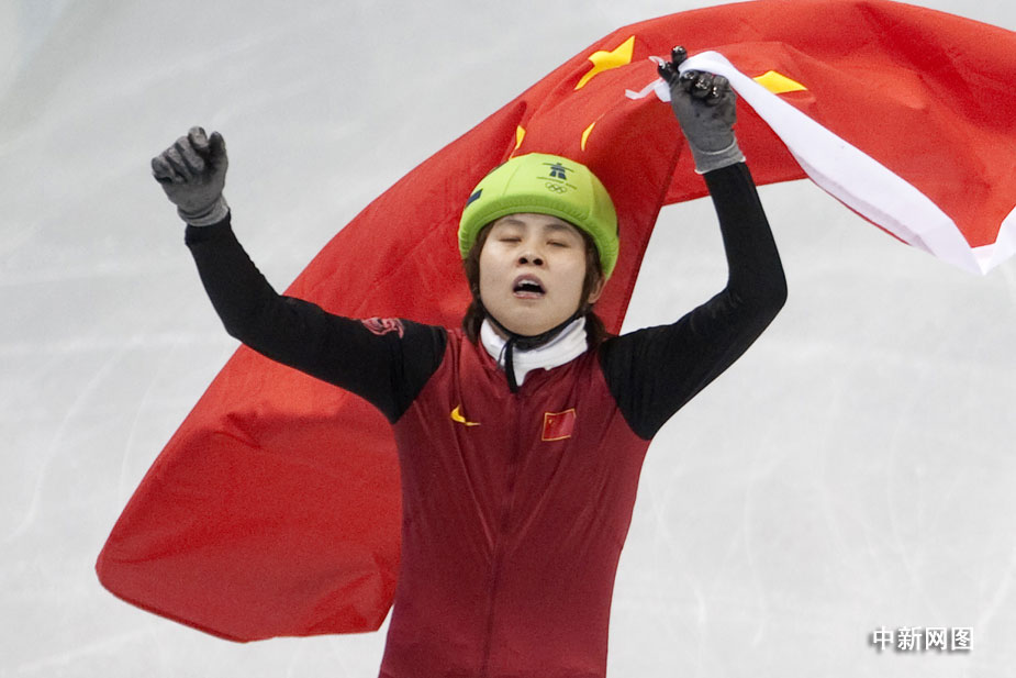 北京時(shí)間27日中午,中國(guó)選手王濛在2010年溫哥華冬奧會(huì)短道速滑女子1000米的決賽中摘得金牌。圖片來(lái)源:中國(guó)新聞網(wǎng)