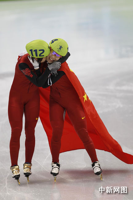 北京時間27日中午,中國選手王濛在2010年溫哥華冬奧會短道速滑女子1000米的決賽中摘得金牌。圖片來源:中國新聞網