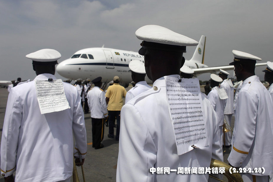25日(周四),巴西總統盧拉抵達海地首府太子港,海地的榮譽樂隊在機場迎接。