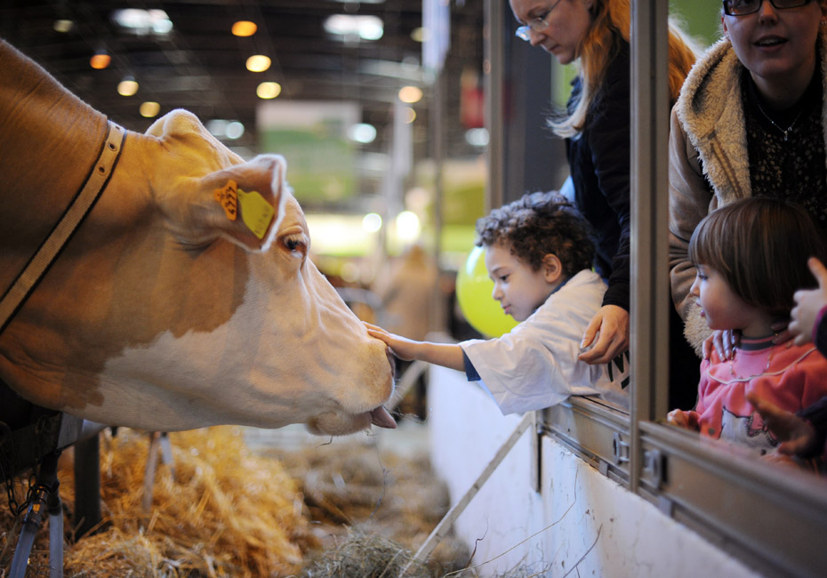近日,為期9天的第47屆法國國際農業博覽會在巴黎凡爾賽門展覽中心開幕。展會上的“飛禽走獸”各類家畜不僅受到商人們的歡迎,也異常惹孩子們喜愛。圖片來源:中國新聞網
