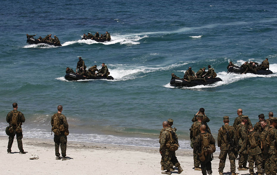 3月9日,美國與菲律賓在菲律賓甲米地省南部特爾納特海軍基地舉行聯合軍事演習。此次軍演雙方共出動了數百名作戰人員。圖片來源:中國新聞網