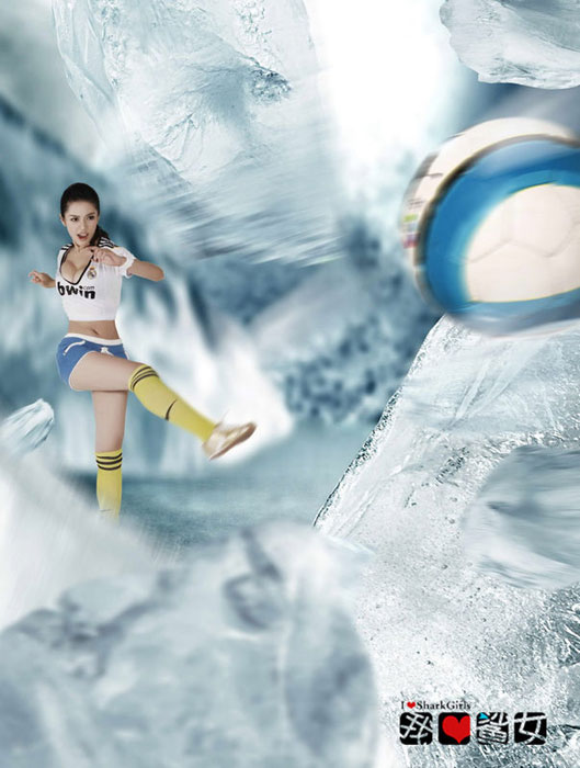 靚模潘霜霜最近拍攝了一組身穿皇馬足球隊8號隊服的性感寫真,其中包括在場上模仿C羅踩單車過人,最后被踢傷和踢碎玻璃的表情。潘霜霜現已簽約保利博納,正式進軍電影圈。圖片來源:中國新聞網