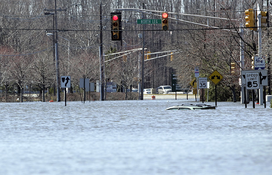 近日,美國東海岸地區再遭暴雨襲擊,新澤西州帕塞伊克河洪水泛濫受災地區民眾紛紛撤離家園。圖片來源:中國新聞網