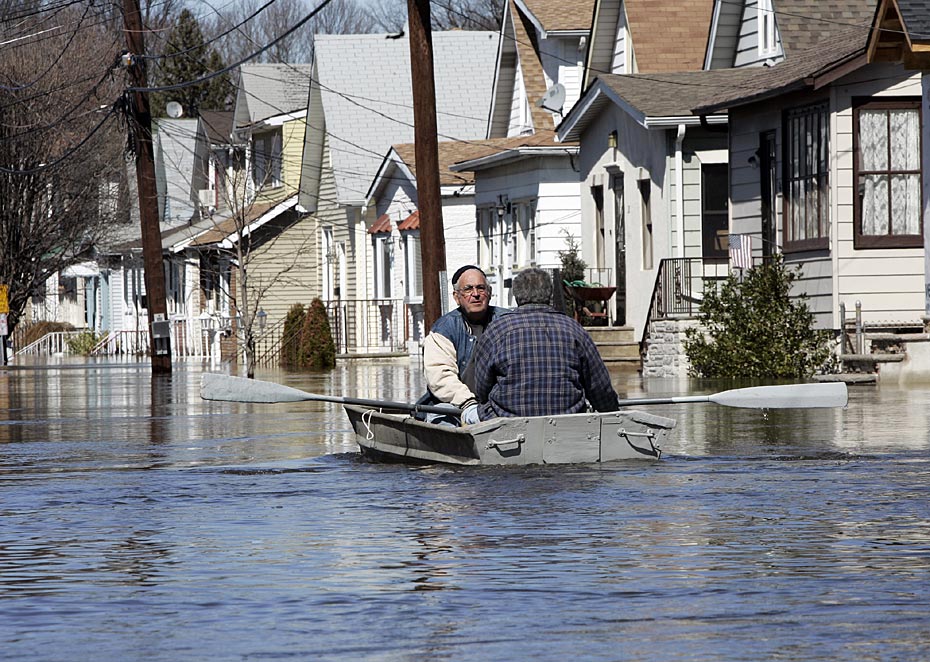近日,美國東海岸地區再遭暴雨襲擊,新澤西州帕塞伊克河洪水泛濫受災地區民眾紛紛撤離家園。圖片來源:中國新聞網