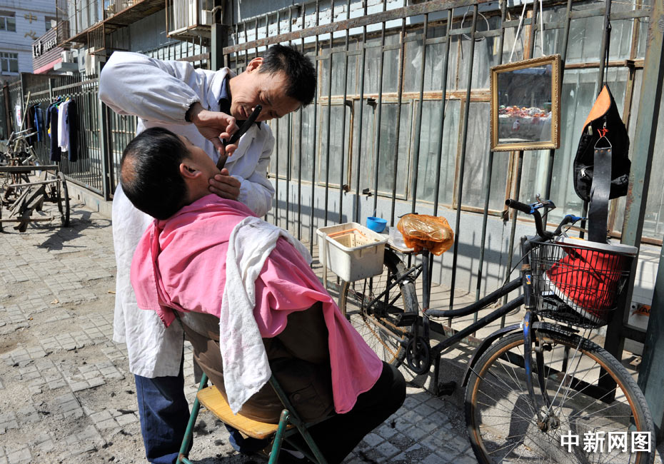 3月17日,北京市民在街頭理發。中新網記者 金碩 攝