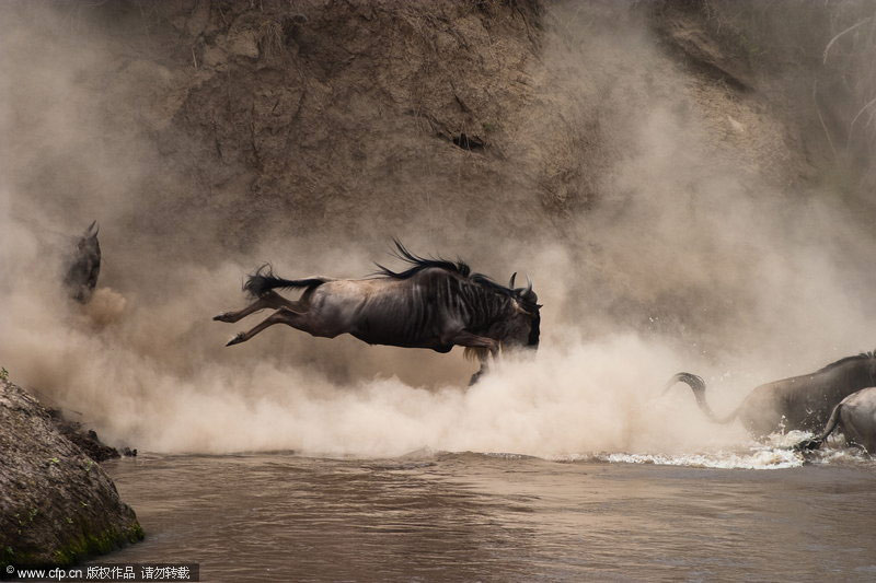 3月17日消息,捷克野生動(dòng)物攝影師瓦拉夫·希爾哈(Vaclav Silha)在肯尼亞馬賽瑪拉(Masai Mara)國(guó)家保護(hù)區(qū)拍到了罕見(jiàn)的牛羚大遷移場(chǎng)面。上百萬(wàn)牛羚集體穿越馬拉河,同時(shí)為了防止被水中的鱷魚(yú)咬到及逃避岸邊叢林里的老虎,牛羚群制造出巨大的聲響并急沖到對(duì)岸。barcroftmedia/CFP