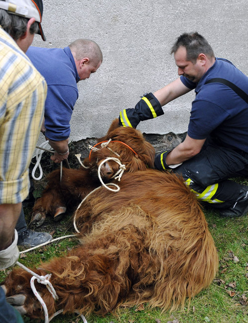 3月18日,德國(guó)一頭蘇格蘭高地牛來(lái)到一居民院內(nèi)懶洋洋的曬太陽(yáng),最后經(jīng)過獸醫(yī)的麻醉和消防員協(xié)力才將這頭蠻力十足的家伙“制服”。圖片來(lái)源:中國(guó)新聞網(wǎng)