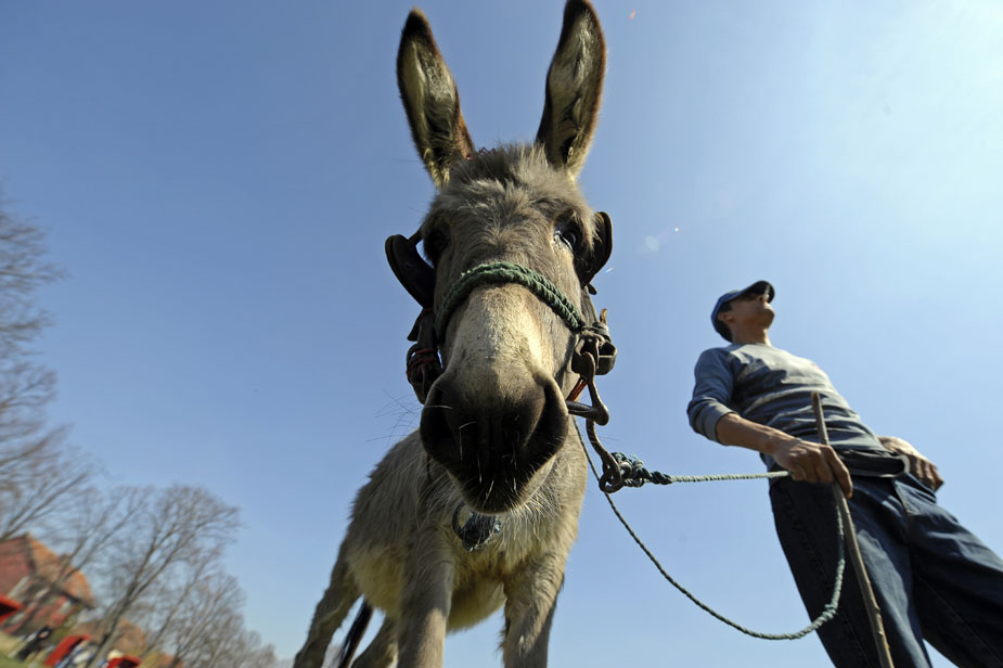 3月20日,在塞爾維亞首都貝爾格萊德西北30公里的一個(gè)村莊舉行了傳統(tǒng)的賽驢大賽。