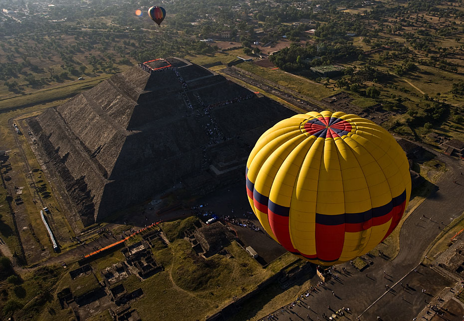 當地時間3月21日,熱氣球從墨西哥特奧蒂瓦坎上空飛過。墨西哥近日在特奧蒂瓦坎附近舉行熱氣球節迎接春分的到來。圖片來源:中國新聞網