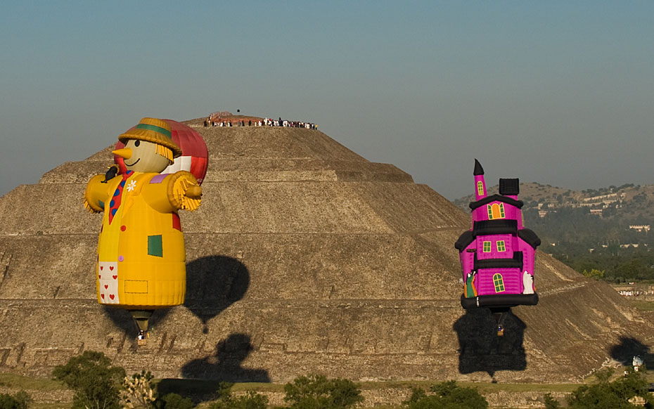 當地時間3月21日,熱氣球從墨西哥特奧蒂瓦坎上空飛過。墨西哥近日在特奧蒂瓦坎附近舉行熱氣球節迎接春分的到來。圖片來源:中國新聞網