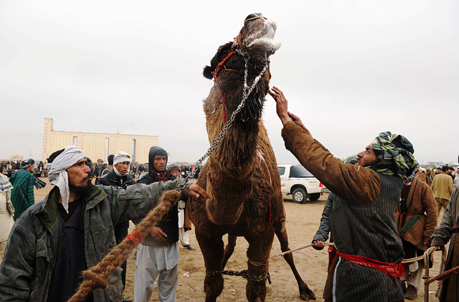 3月22日,阿富汗舉行傳統的都駱駝大賽慶祝阿富汗新年。斗駱駝在阿富汗是一項頗受民眾喜歡的運動。