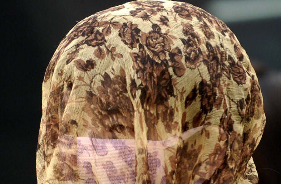 22日,天津,為防沙塵,一位市民頭戴紗巾,嘴戴口罩。xiaochunhu 攝