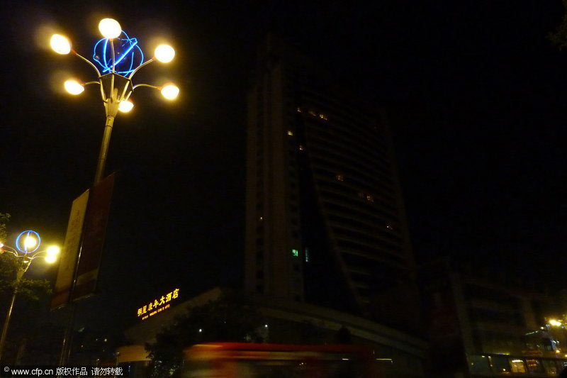 3月27日20時30分,四川省遂寧市明星康年大酒店準時熄燈,與全球同步“地球一小時”,以實際行動推動這項目前世界上規模最大的環保行動。鐘敏/CFP