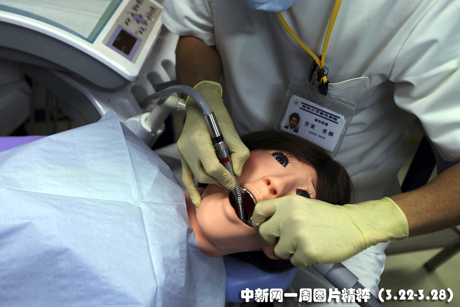 3月23日(周二),東京昭和大學一名牙醫(yī)正在一個名為花子的機器人身上演示治療操作。這個機器人是該校自主開發(fā)的,她的嘴會流血,也會分泌唾液。