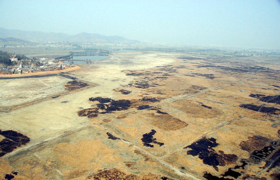 圖為2010年3月27日,干涸的大理祥云縣青海湖。目前云南的旱情仍然在加重,云南省防汛抗旱指揮部的最新數據顯示,截止到3月26號全省飲水困難的人口已經達到了828萬,比一周前增加了10多萬人口。 小 智 攝