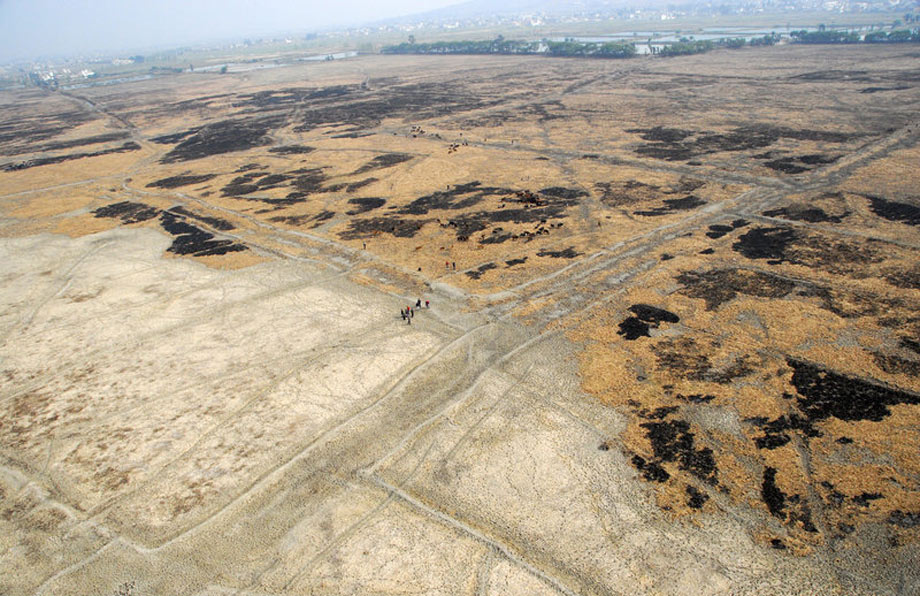 圖為2010年3月27日,干涸的大理祥云縣青海湖。目前云南的旱情仍然在加重,云南省防汛抗旱指揮部的最新數據顯示,截止到3月26號全省飲水困難的人口已經達到了828萬,比一周前增加了10多萬人口。 小 智 攝