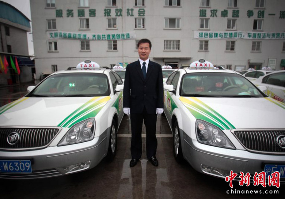 3月24日,上海巴士市西公司,駕駛員們正在整裝待發(fā)。當日,上海巴士公司首批四十輛別克君越世博出租正式發(fā)車,當日起上海市民可以在街頭看到世博出租車,計價則和普通出租車相同。趙靜/CFP