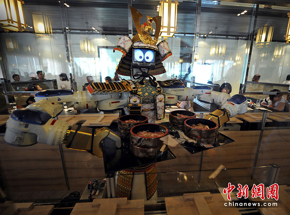 這家日本餐館是泰國首家擁有機器人服務員的餐館,顧客可以通過電子觸摸屏進行點菜,機器人則會帶來相應的服務。機器人服務員能有節奏地跳舞,還可以自動到餐桌為客人收走空盤子。