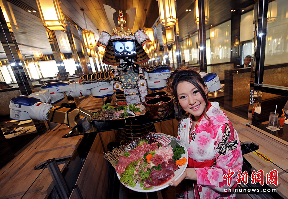 這家日本餐館是泰國首家擁有機器人服務員的餐館,顧客可以通過電子觸摸屏進行點菜,機器人則會帶來相應的服務。機器人服務員能有節奏地跳舞,還可以自動到餐桌為客人收走空盤子。