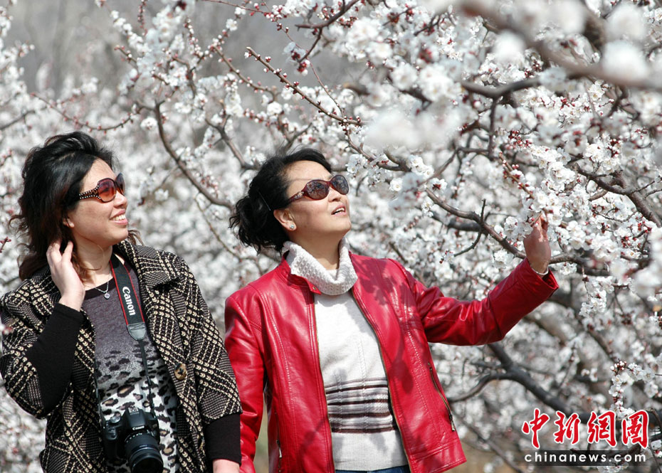 4月3日,山東鄒平縣萬畝杏園內鮮花怒放,爭奇斗艷,正在進行的杏花節觀花活動吸引了當地及周邊成千上萬的攝影愛好者和游客紛紛前來拍照游玩,賞花踏青。中新社發 董乃德 攝