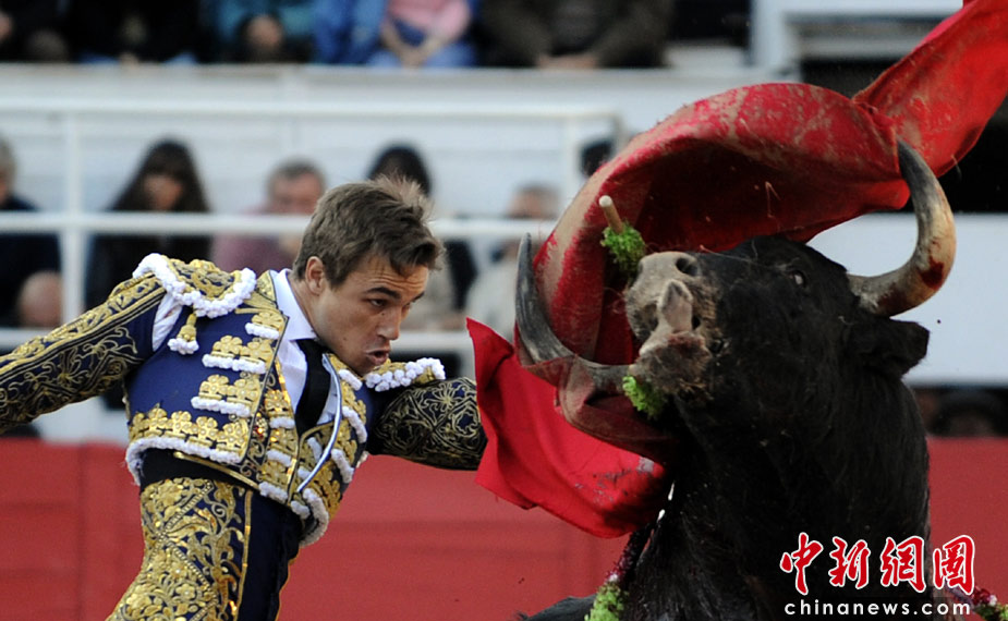 當(dāng)?shù)貢r(shí)間4月5日,法國南部上演了一場精彩的斗牛大賽,慶祝復(fù)活節(jié)的到來。圖片來源:中國新聞網(wǎng)