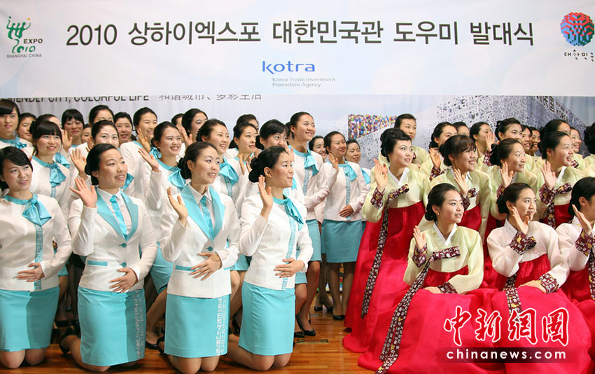 2010年4月5日,負責上海世博會韓國館宣傳和介紹的服務人員90人當日在首爾舉行了組團儀式。
