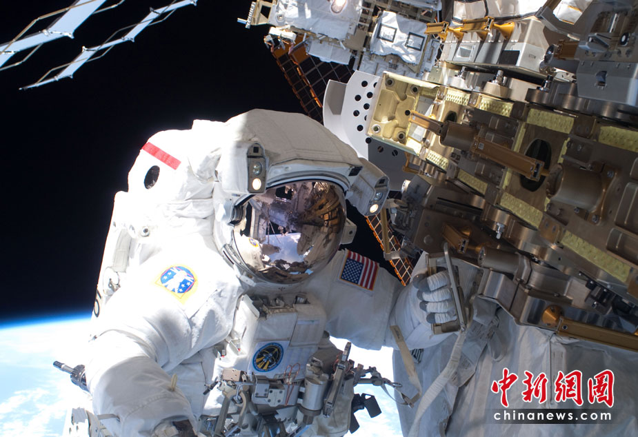 "發現號"宇航員太空中維護國際空間站