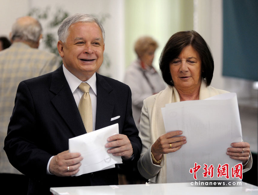 波蘭總統卡欽斯基乘坐的一架圖-154飛機10日在俄羅斯斯摩棱斯克州北部一軍用機場降落時失事,至少87人死亡?J斯基本人被確認身亡。圖為2009年波蘭總統卡欽斯基與妻子在歐洲議會選舉上投票。
